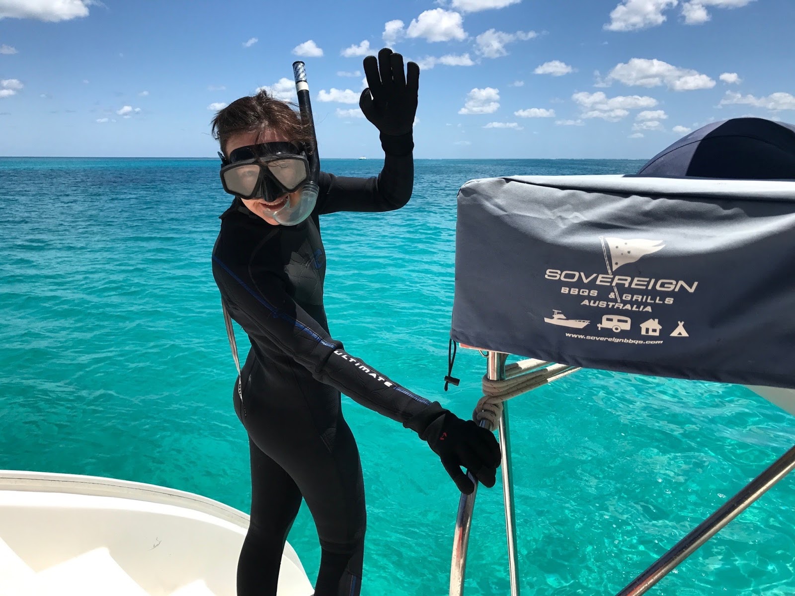 The sun was out and the water was crystal clear. I was sitting on the bow contemplating a swim, when I saw a dark shape swimming towards the boat.